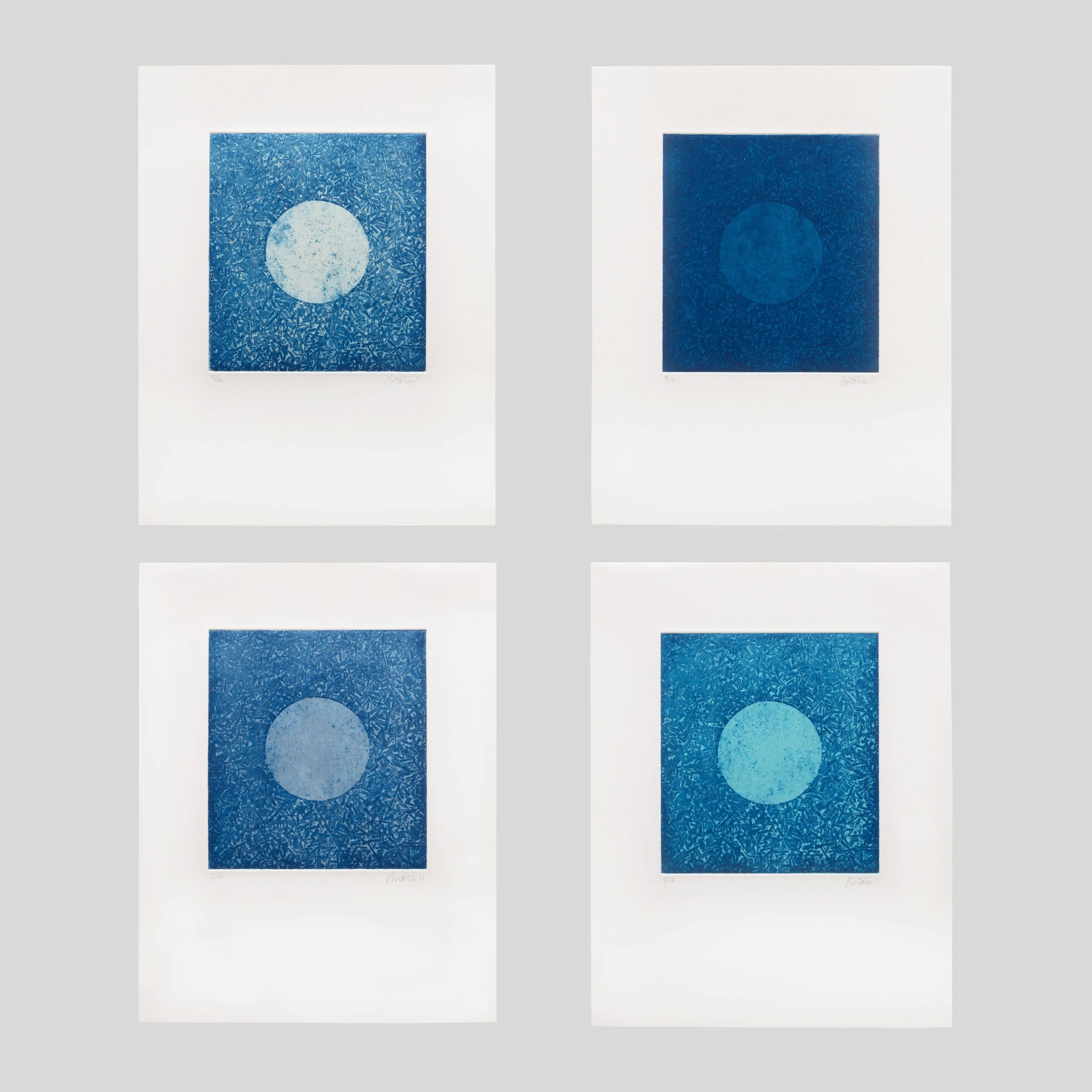 Beginning Again (Blue #1), 2023, Photo polymer gravure on Japanese mulberry paper - monoprint, 14 x 14 inches